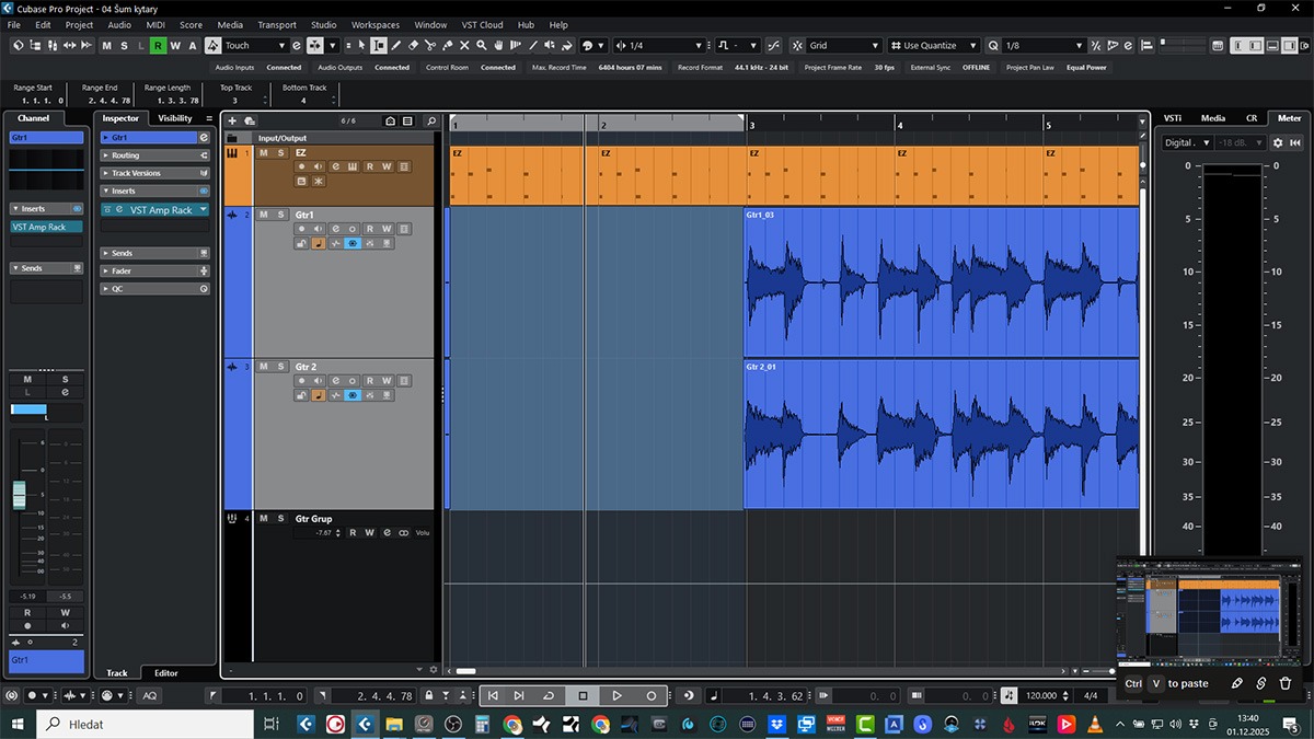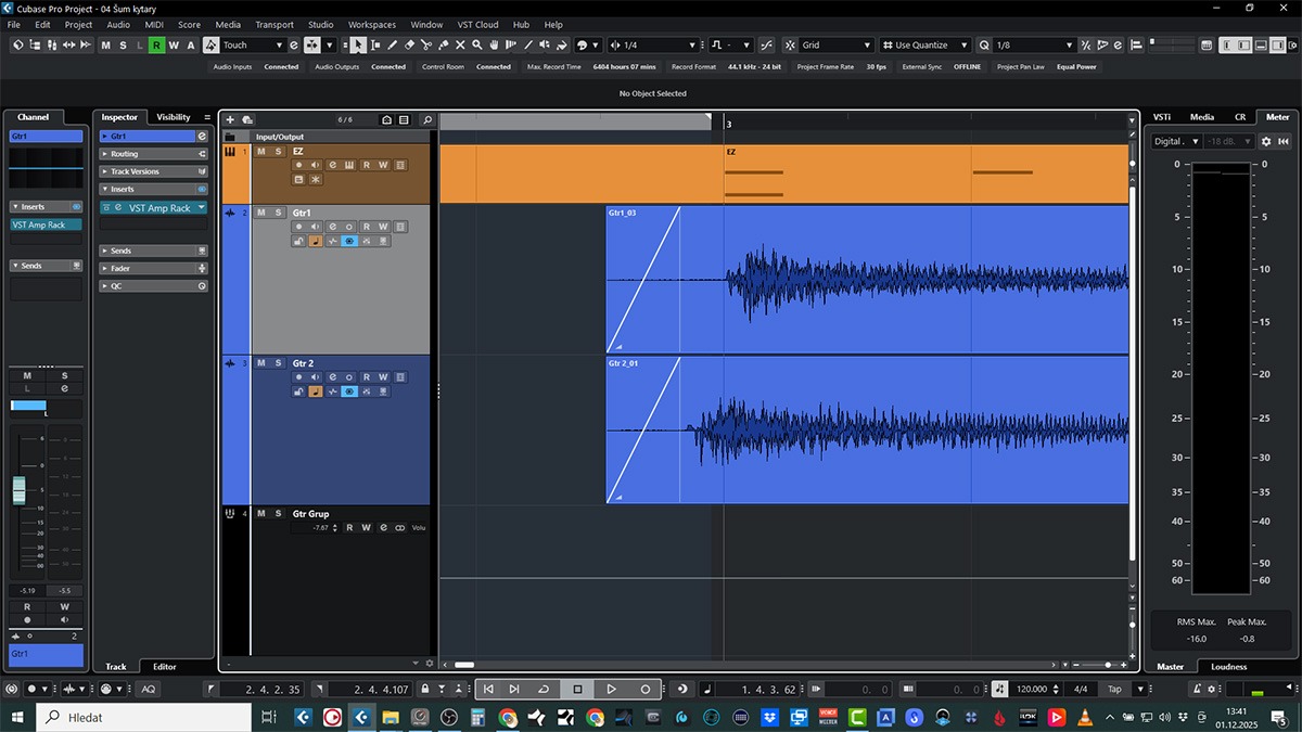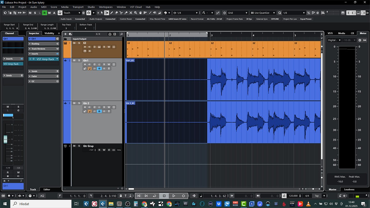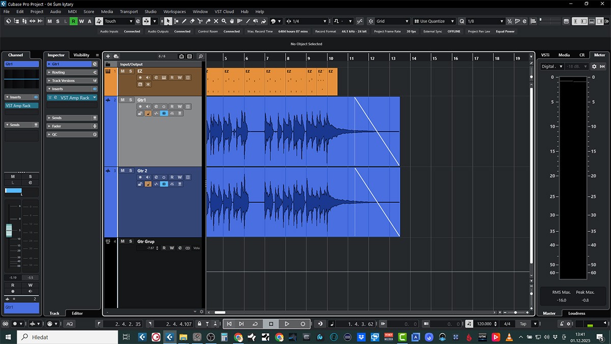 - Základní editace – odstřihnout úseky, kde kytara nehraje.