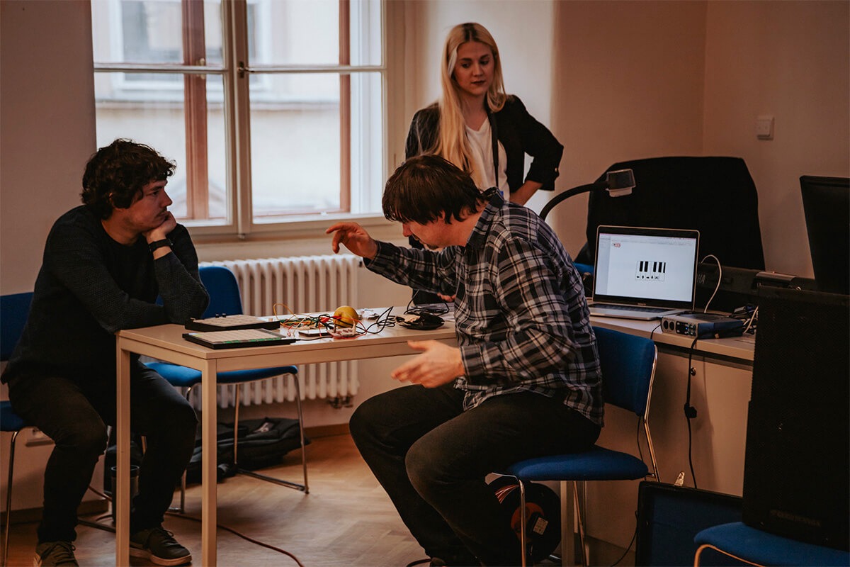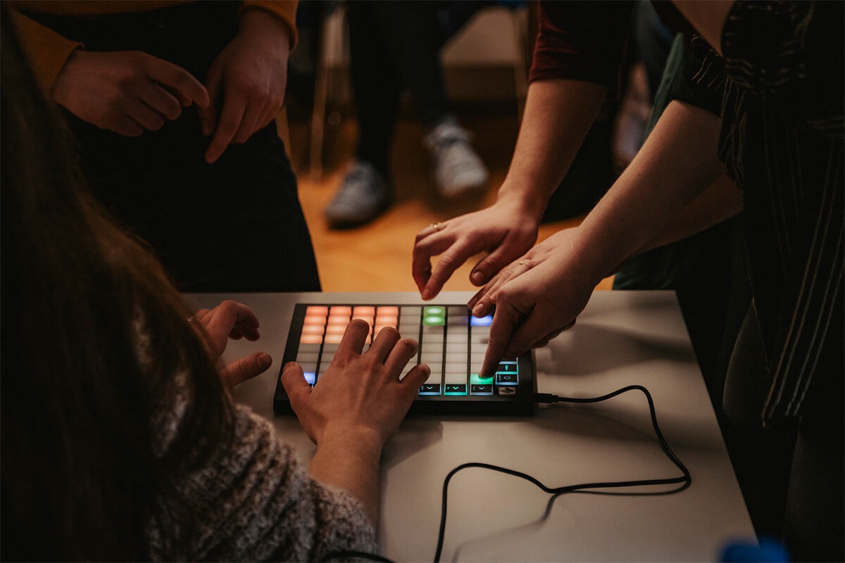 Celá aktivita končí střídáním všech účastníků v improvizaci s padovým kontrolerem. Díky osvětlení konkrétních tlačítek se všichni strefují do správných tónů, odpadá nervozita, a tak je následující diskuse otevřená a upřímná.
