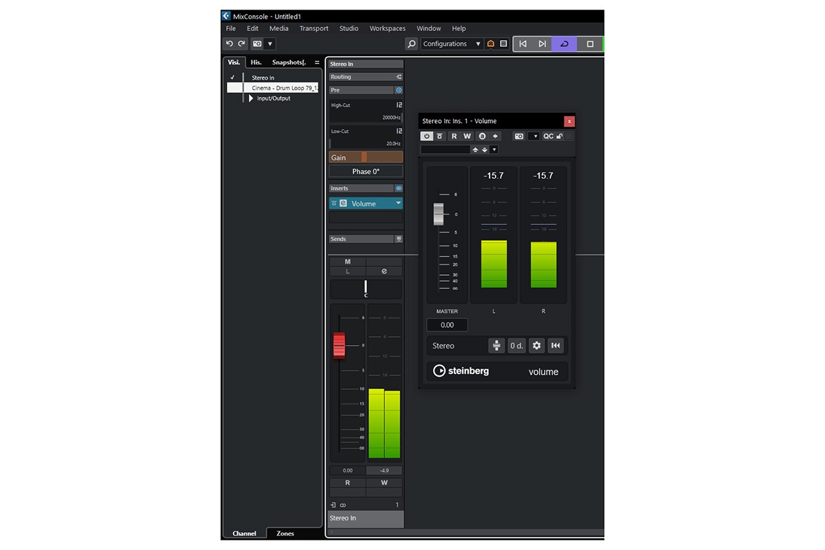Tip: V Cubase najdete Clip Gain v horní části každého klipu. V jiných DAW lze použít stock plugin „Gain“.