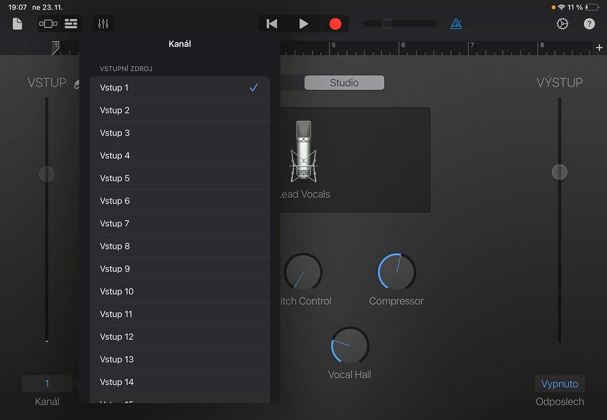 To mi samozřejmě nedalo a hned jsem to musel vyzkoušet. Nakonec proběhla zkouška jenom s iPadem, protože ten mám s konektorem USB‑C. Na iPhonu s klasickým Lightning konektorem je zapotřebí ještě redukce Camera Adapter a tu nemám. Každopádně věřím, že by to fungovalo stejně dobře a napoprvé jako siPadem. Hned po zapojení přiloženým USB‑C kabelem vám přehrávaný signál jde do výstupů a všech osm vstupů můžete nahrávat na DAW aplikace, které máte nainstalovány. Ano, trocha zklamání, aplikaci LUNA jsem na App Store nenašel. Ale nevěšme hlavu, to se třeba jednoho dne změní.