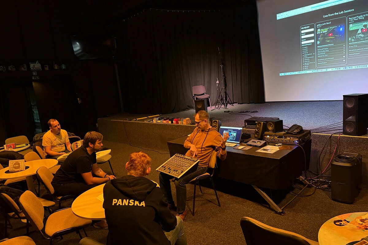 Během dne byly detailně představeny různé techniky nahrávání bicích, akustické kytary i elektrické kytary z komba. Účastníci měli možnost pracovat s profesionálními mikrofony značky Universal Audio, stejně jako s jejich špičkovými kytarovými krabičkami, které si mohli vyzkoušet přímo v akci.